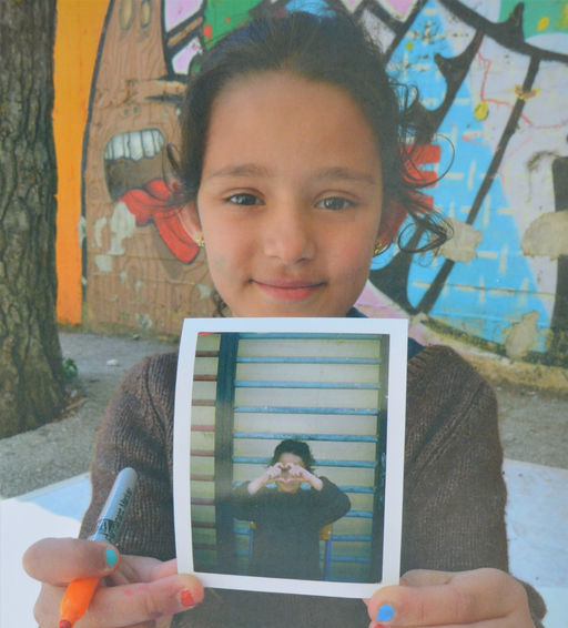 Mohamad taught the children photography using his father's camera. These photographs are taken by Mohamad and the children, both in the camp and in the school.